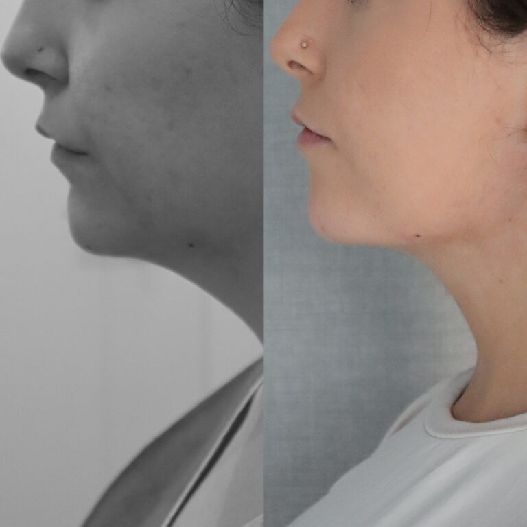poprawa konturu twarzy, wyraźniejsza linia żuchwy.